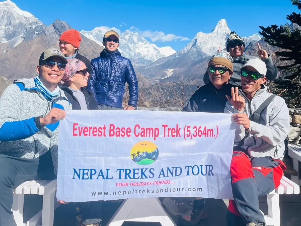 - Reaching the iconic Everest Base Camp (5,364m) at the foot of the Khumbu Icefall
