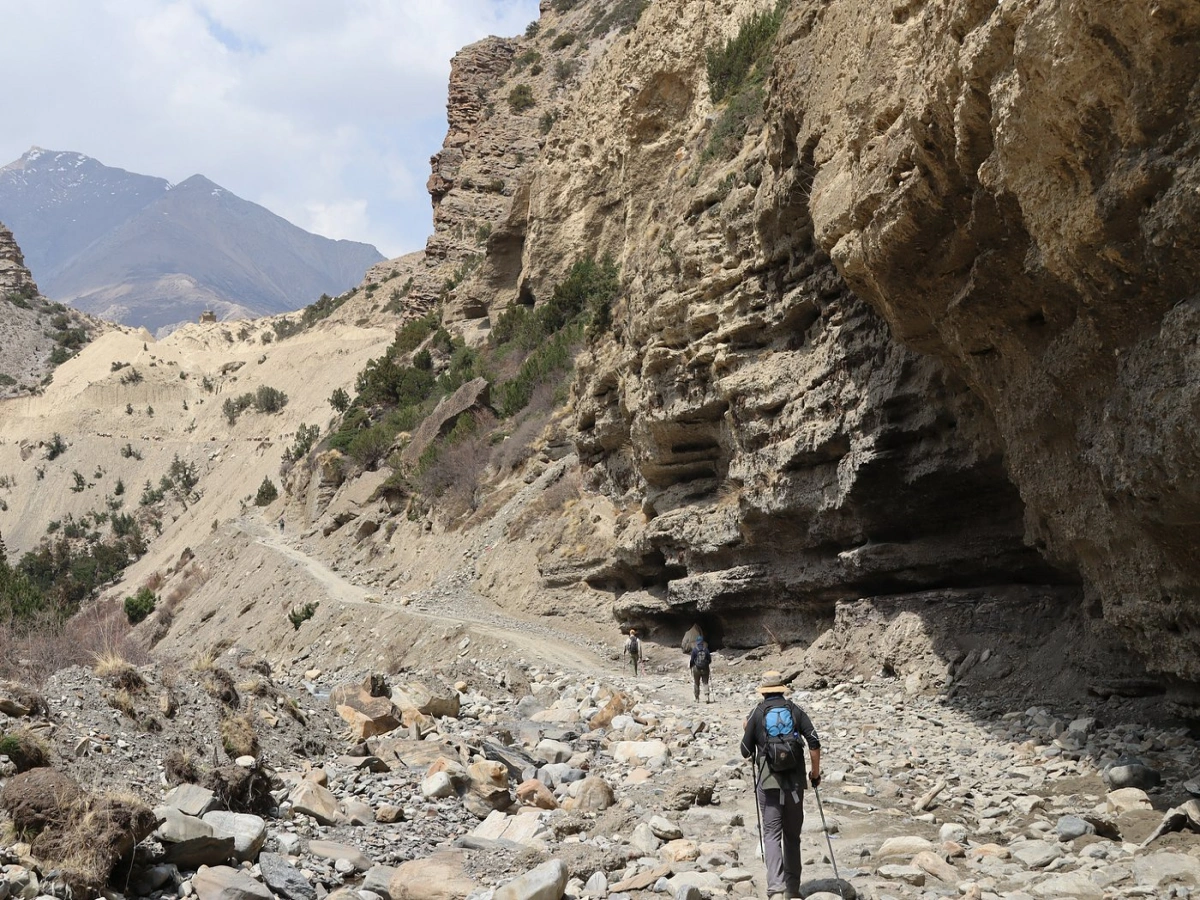 The trek begins with a flight to Nepalgunj, then a scenic but often bumpy flight into the STOL airstrip at Juphal. From here, you descend to the Thuli Bheri River and Dunai, the administrative headquarters. The trail initially follows the river valley through villages like Tarakot before turning north and climbing steadily into the arid, high-altitude desert of Upper Dolpo. The terrain shifts from pine forests to scrubland, then to a barren, rocky landscape reminiscent of Tibet.