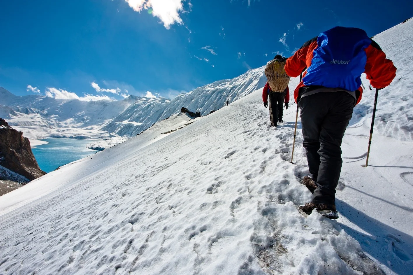 A challenging hike across rugged terrain and landslide-prone slopes leads to Tilicho Base Camp, the gateway to the lake and the peak.